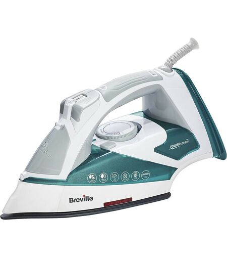 Breville Powersteam 2600W Ferro da Stiro a Vapore, Piastra in Ceramica, Colpo Vapore 220 g, Getto Vapore Verticale 50g/min, Auto Spegnimento, Bianco/Turchese