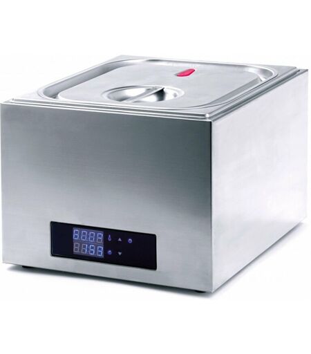 La vasca per la cottura bagnomaria compatta di SousVideTools da 14 litri è dotata di schermo tattile con un display illuminato ben visibile. È stata concepita per gli chef professionisti con un design resistente e contemporaneo. La precisone e l'accuratezza sono assicurate dal controller PID che regola la temperatura con l'approssimazione di 0,1° C per cuocere gli alimenti alla perfezione. Gli alimenti possono essere separati facilmente tramite i divisori mobili in acciaio inossidabile. Ciò consente di separare i sacchetti sottovuoto durante la cottura per consentire un maggiore controllo delle porzioni, oppure gli alimenti in diverse sezioni per identificarli in modo semplice. I divisori possono essere utilizzati anche per separare i prodotti appena messi nella vasca (quindi non rigenerati) da quelli in attesa di essere immersi. Questa vasca per la cottura a bagnomaria è stata progettata in modo che la resistenza e il sensore della temperatura siano posizionati sotto la parte interna ...