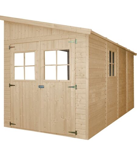 TIMBELA Casa da giardino in legno naturale (senza parete laterale) 416x216 cm/8 m²- Magazzino esterno con finestre - Capanno da giardino - Bici, Deposito