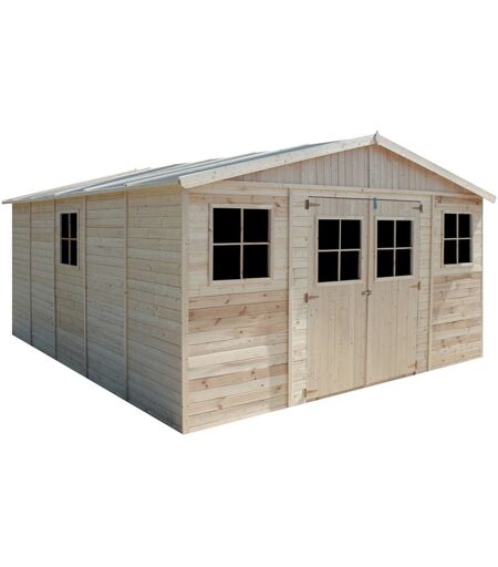 TIMBELA Casa da giardino in legno naturale con pavimento impregnato 418x520 cm/20 m²- Magazzino esterno con finestre - Capanno da giardino - Bici, Deposito