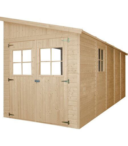 TIMBELA Casa da giardino in legno naturale (senza parete laterale) con pavimento impregnato 513x216 cm/9.91 m²- Magazzino esterno con finestre - Capanno da