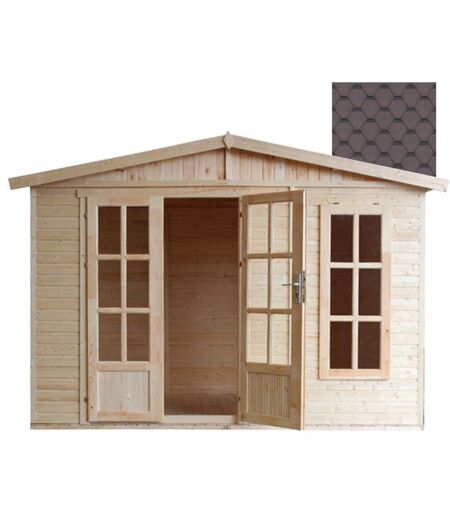 TIMBELA Casetta da giardino 6m2 - 332x222xA232 cm - Casetta in legno da giardino - Capanno in legno - Studio giardino - con tegole bituminose marrone