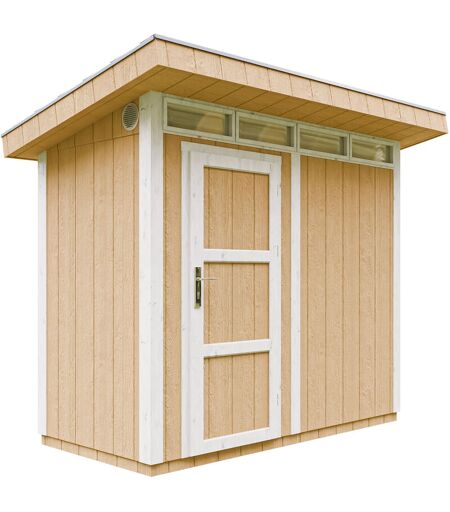 TIMBELA Casetta da Giardino di qualità premium 3m²-L161xW294cm-con Pavimento, Tegole Bituminose,Set di Vernici-Costruzione con pannelli lp Smartside-Capanno