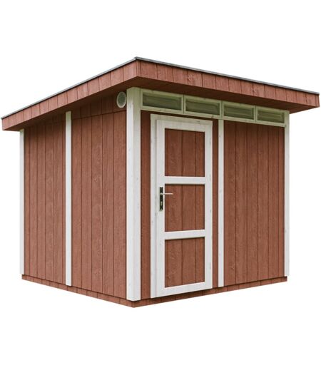 TIMBELA Casetta da Giardino di qualità premium 5,9m²-L279xW293cm-con Pavimento, Tegole Bituminose,Set di Vernici-Costruzione con pannelli lp Smartside