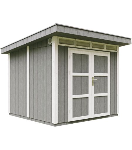 TIMBELA Casetta da Giardino di qualità premium 5,9m²-L279xW293cm-con Pavimento, Tegole Bituminose,Set di Vernici-Costruzione con pannelli lp Smartside