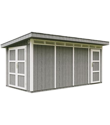 TIMBELA Casetta da Giardino di qualità premium 8.52+2.95m²-L530xW279cm-con Pavimento, Tegole Bituminose,Set di Vernici-Costruzione con pannelli lp Smartside