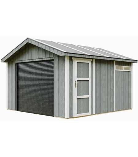 TIMBELA Garage di qualità premium 13 m² - L378xL412 cm - garage per moto, biciclette, macchine da giardinaggio - Costruzione con pannelli lp Smartside
