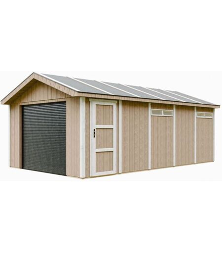TIMBELA Garage di qualità premium 21 m²- L378xL648 cm- garage per auto, moto, biciclette, macchine da giardinaggio - Costruzione con pannelli lp Smartside