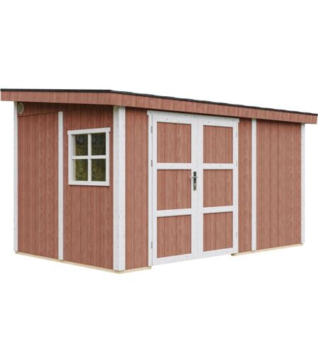 TIMBELA Casetta da giardino di qualità premium 8,68 m² - H231x248x412 cm - Costruzione in pannelli lp Smartside - Senza pavimento e parete laterale