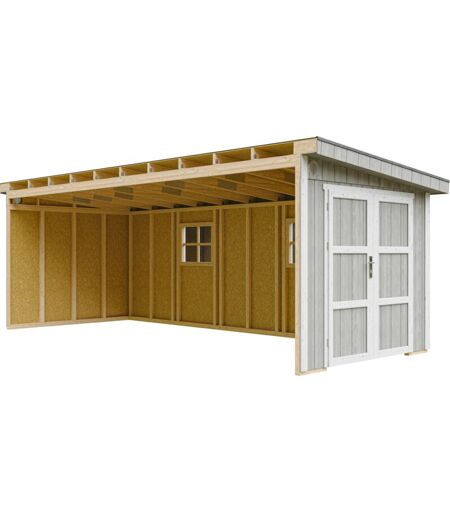 TIMBELA Casetta da giardino di qualità premium 14,3 m² - H231x248x648 cm - Costruzione in pannelli lp Smartside - Senza pavimento e parete laterale