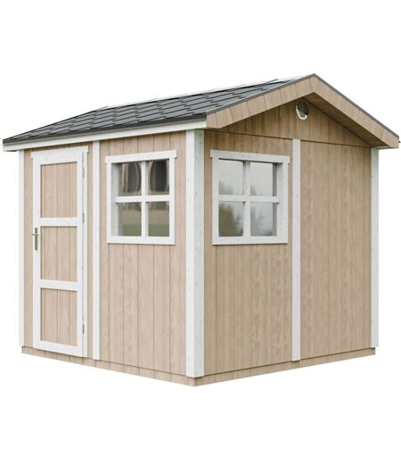TIMBELA Casetta da giardino di qualità premium 5,9 m² - H252x250x294 cm - Costruzione in pannelli lp Smartside - Con pavimento e Tegole Bituminose