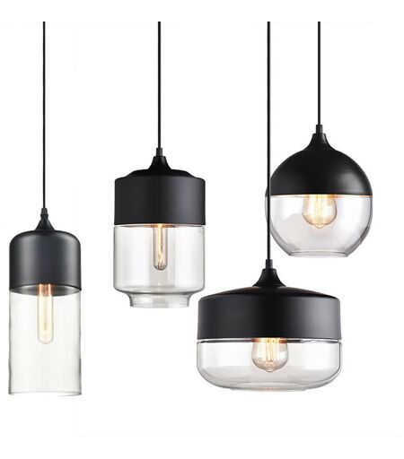 AXHUP 4 Pezzi Lampada a Sospensione, Lampada da Soffitto in Vetro, Illuminazione per Soggiorno Sala da Pranzo Nero con Paralume Trasparente