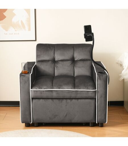 FORTUNA LAI Poltrona Convertibile 83 x 167(75) x 76 cm 3 in 1 - con Porta Tazze e Supporto per Telefono - Poltrona Reclinabile - Grigio