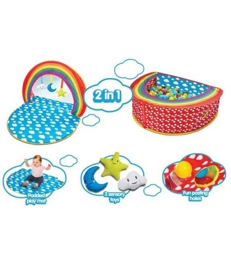 Kid Active è il primo spazio di gioco per il tuo piccolo mentre inizia a esplorare il mondo che lo circonda. Piena di colori vivaci e trame per stimolare i sensi, la palestra ha 3 divertenti giocattoli appesi in tessuto guardare e toccare. Il tappetino imbottito è removibile e perfetto per il riposo o il tempo di gioco ed è lavabile in lavatrice, facilissimo da pulire! Mentre il tuo bambino inizia a sedersi, la baby gym si trasforma facilmente in un divertente box con fori per le palline, utilissima a divertirsi ed a sviluppare la coordinazione occhio-mano. Si ripiega facilmente è davvero il compagno perfetto per giocare in casa o fuori. Le palline non sono incluse. Palestrina Kid Active Gioco 2 in 1 luminosa e colorata con tappeto gioco imbottito lavabile 3 giocattoli inclusi si trasforma facilmente in un buca per le palle (non incluse) conforme alle normative europee di sicurezza adatta fin dalla nascita si ripiega con poche semplici mosse ...