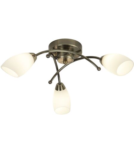 Collezione Lyric Music ELEGANZA OVUNQUE Questo lampadario a 3 luci Opera in ottone anticato con paralumi in vetro opale sembra elegante in qualsiasi spazio abitativo. Il tradizionale raccordo con finitura in ottone anticato ha tre paralumi in vetro opalino dalla forma meravigliosa con steli curvi, che forniscono una pratica fonte di luce per l'intera stanza. ...