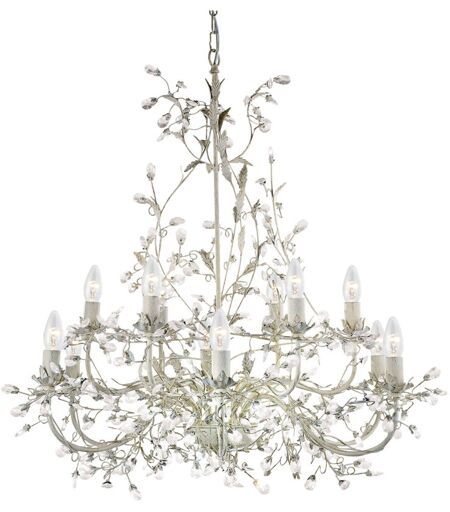 Collezione Almandita CRISTALLO E DECORI FLOREALI PER I TUOI INTERNI Questo lampadario Almandite a 12 luci è realizzato utilizzando metallo color crema e oro con delicate gocce di vetro. Crea un imponente centrotavola per qualsiasi camera da letto, soggiorno o zona pranzo La tradizionale finitura crema e oro conferisce alla luce un aspetto classico e la decorazione del vetro è sorprendentemente intricata ed elegante, mentre le dodici portalampade che ospitano lampade a candela E14 (non incluse) creano un bellissimo effetto luminoso quando accesi. Regolabile in altezza, questa lampada a sospensione può essere modificata per adattarsi a qualsiasi stanza o appesa sopra un tavolo da pranzo per creare un'atmosfera accogliente. ...