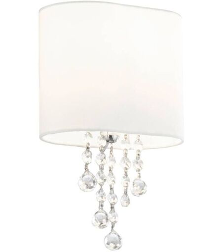 Collezione Nina ELEGANTI GOCCE DI CRISTALLO Questa applique Nina cromata con perline di cristallo e paralume in tessuto bianco è elegante e sofisticata. Il grande paralume di forma ovale è realizzato in tessuto bianco di qualità e presenta gocce di cristallo sferiche abbinate che pendono con grazia dal centro. Viene fornito con un pratico interruttore a bilanciere e sta benissimo in ogni angolo della tua casa. ...