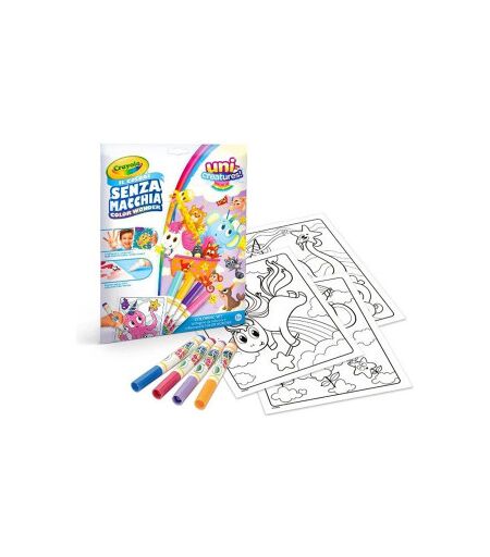 La linea per i bambini in eta' pre-scolare Senza Macchia con inchiostri magici trasparenti che acquistano colore solo sull'apposita carta e da nessun'altra parte. Contiene tante pagine da colorare con tante creature fantastiche ispirate dal mondo degli unicorni a e 4 pennarelli senza macchia Color Wonder. I pennarelli non sporcano su pelle, vestiti, mobili. Per colorare in tranquillita' senza paura di sporcare. ...