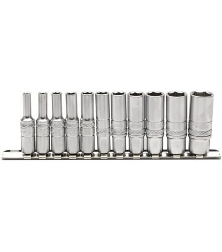 Draper 16491 1/4-inch Square Drive imperiale di 11 bussole profonde su metallo ferroviario -