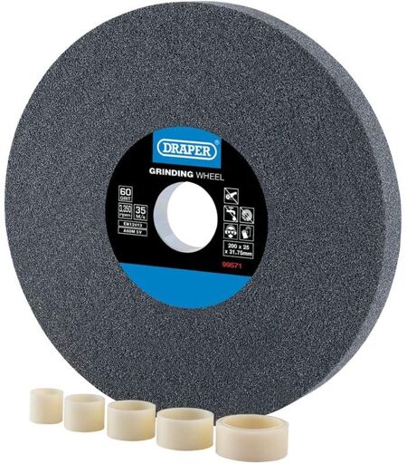 La mola da banco Draper è di 200 mm x 25 mm con un livello di grana grossa di 60 g. Con questa ruota, riceverai anche 5 anelli di riduzione con dimensioni del foro di 12,70 mm, 15,90 mm, 19,05 mm, 22,23 mm e 25,40 mm per adattarsi alla maggior parte delle smerigliatrici da banco. Questo è adatto per smerigliatura generale, sbavatura e affilatura utensili, ma solo per il taglio a secco. Come tutti i prodotti Draper li abbiamo realizzati, testati e certificati secondo l'attuale standard EN12413:2019. ...