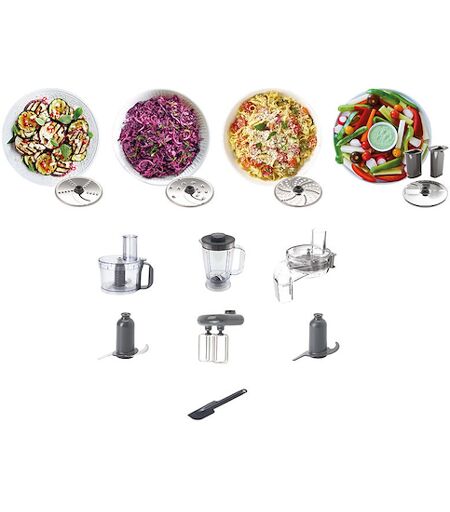 KITCHEN - PREPARAZIONE CIBI - Tipologia prodotto: Kitchen Machine-Potenza in Watt: 800,000-Capacità massima recipiente (lt): 2,100-Numero di dischi/lame: 4,000-Numero velocità: 2,000-Tasto Pulse: Sì-Tritacarne: No-Tritatutto: Sì-Centrifuga: No-Impastatrice: Sì- ...