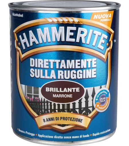 Hammerite SMALTO ANTIRUGGINE BRILLANTE 0,75 l MARRONE 8-10 m² CON 1 l