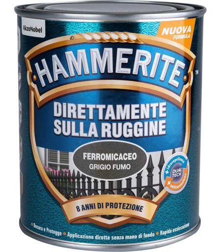 Hammerite SMALTO ANTIRUGGINE FERROMCACEO 0,75 l GRIGIO FUMO 8-10 m² CON 1 l