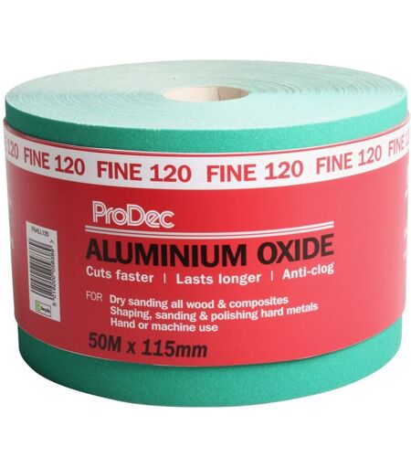 ProDec Rotolo di carta abrasiva in ossido di alluminio verde, grana 120, grana fine, per levigare legno, vernice, gesso, riempitivo, metallo e molto altro