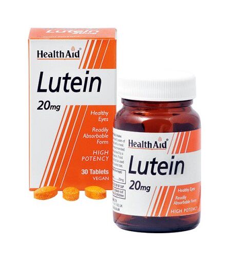 HealthAid Lutein 20mg - Descrizione Integratore alimentare di Luteina utile per proteggere le cellule contro gli effetti dannosi dei radicali liberi. Svolge un ruolo importante per mantenere sani gli occhi. È un carotenoide che si trova in frutta e verdura. Negli esseri umani è concentrato nella … ...