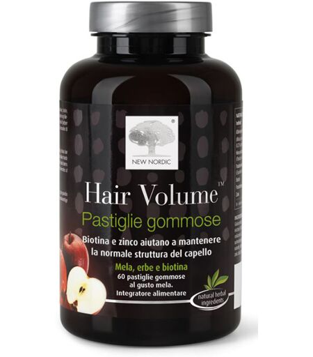 Hair Volume - Descrizione Integratore alimentare. È una pastiglia gommosa alla mela, contenente inoltre miglio, equiseto, biotina e zinco. Il miglio favorisce il benessere dei capelli e delle unghie. La biotina e lo zinco contribuiscono a mantenere pelle e capelli sani. Lo zinco aiuta inoltre a man… ...