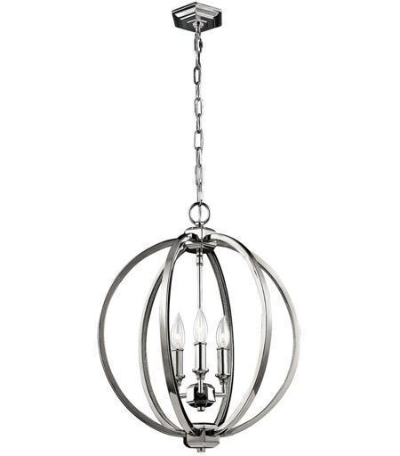 Collezione Corinne EFFETTI SCINTILLANTE Lampada media a sospensione a 3 luci - Nichel lucido. La moderna silhouette a sfera della collezione Corinne di Feiss è caratterizzata da un intarsio di cristalli lungo le superfici interne per un effetto scintillante. I portalampade centrali sono fissati a un supporto che dà l'illusione di fluttuare. I tre supporti principali e il rosone a soffitto condividono gli stessi dettagli di stile architettonico. ...