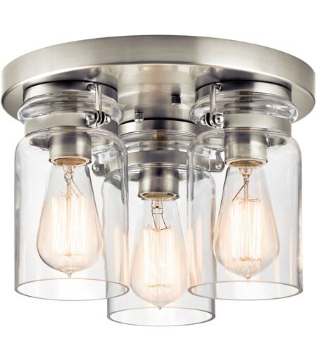 Collezione Brinley STILE VINTAGE, CARATTERE MODERNO Plafoniera a 3 luci . Lo stile vintage della collezione Brinley conferisce un carattere moderno alla familiarità e alla comodità dei barattoli da conserva. Utilizzata in gruppo o da sola, la collezione Brinley è un nuovo tocco per la casa, con finiture in nichel spazzolato o bronzo antico. ...