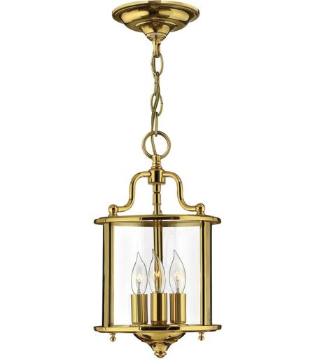 Collezione Gentry VETRI CURVI Lampada piccola a sospensione a 3 luci. Il design tradizionale di Gentry è proposto in quattro finiture classiche: bronzo antico, peltro, nichel lucido e ottone massiccio lucidato. I vetri curvi trasparenti (di tipo chiaro sui modelli in bronzo antico), i manicotti bianchi per le candele e i portacandele coordinati aggiungono un'eleganza classica a questo stile senza tempo. ...