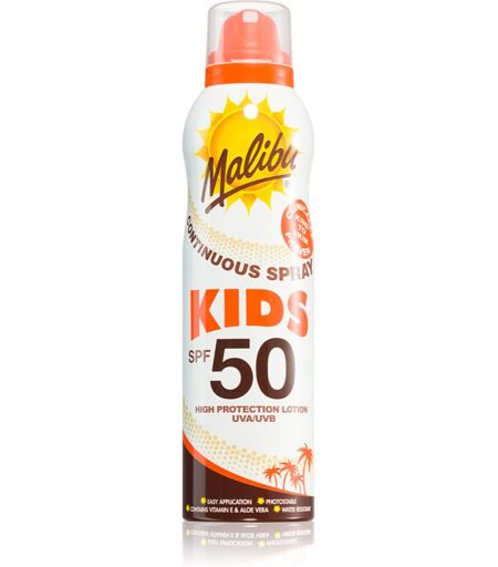 Malibu Continuous Spray, 175 ml, Cosmetici solari per bambini per bambini, Vuoi stupire tutti con un corpo splendidamente abbronzato? La cura che darai alla tua pelle prima di prendere il sole è un passaggio da non trascurare. Il prodotto Malibu Continuous Spray favorirà il processo di abbronzatura, conferirà alla pelle ciò di cui ha bisogno assicurandoti un risultato ancora più bello. Caratteristiche: ha effetti emollienti protegge la pelle dalla secchezza Modo d’uso: Applicare prima di esporsi al sole e strofinare accuratamente. ...