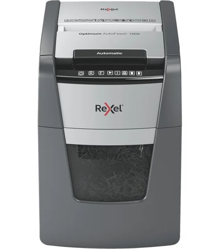 Rexel Distruggidocumenti Optimum AutoFeed+ 100X distruggi documenti Triturazione incrociata 55 dB 22 cm Nero, Grigio [2020100XEU]