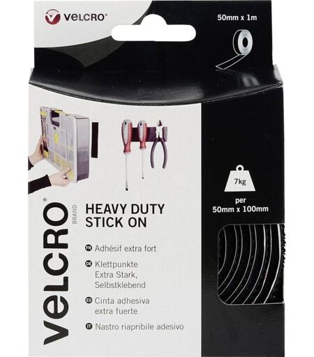 Velcro VEL-EC60241 Nastro a strappo da incollare Lato morbido e lato rigido, extra forte (l x l) 1000 mm x 50 mm Nero -