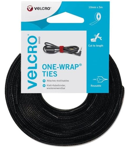 Velcro Nastro monouso, 10 mm x 5 m, nero