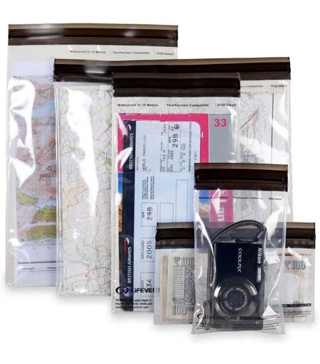 Queste borse incredibili sono impermeabili a 10 metri e completamente touchscreen compatibili. Essi sono costituiti da resistenti pellicola tripla polimero e chiudono semplicemente con una pressa a tenuta d´aria per bloccare la guarnizione. Viaggio Suggerimento: Scegliere il pacchetto più piccolo ´vostri oggetti di valore di tre diverse dimensioni o la più grande selezione´ mappe ´.Caratteristiche:IPX8 valutato impermeabile fino a 10 metriRealizzata in resistente pellicola tripla polimeroStampa tenuta d´aria per bloccare sigilloTouchscreen ideale compatibile per telefoni / tablet.Specifiche tecniche:152 x 279 mm305 x 305 mm229 x 349 mm ...