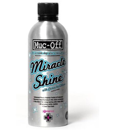 Muc Off Miracle Shine è l'ultimo prodotto di alta qualità per la lucidatura e la protezione. È stato specificamente progettato per offrire una lucentezza di lusso che sopporterà gli elementi e manterrà la tua moto come se fosse appena rotolata dal pavimento dello showroom! La nostra formula unica contiene una fusione di 3 cere separate e una serie di ingredienti altamente avanzati che si combinano per produrre un trattamento protettivo superiore.Carnauba Wax, uno dei componenti principali, è universalmente riconosciuta come la cera più dura che si conosca dall'uomo.La parte davvero intelligente di Miracle Shine è la nostra tecnologia Fluoro Polymer che abbiamo incorporato per la sua incredibile capacità di respingere l'acqua e gli agenti inquinanti atmosferici. Inoltre, rende la tua bici più facile da lavare, e Miracle Shine ti aiuta anche a stare più pulito tra i lavaggi. Ogni volta che applichi Miracle Shine, uno strato di Fluoro Polimero si unisce a formare una barriera protettiva microscopica e ultra resistente che può prolungare la durata della finitura prevenendo l'accumulo di sporcizia e sporciziaCaratteristiche:Lo smalto e il protettore di alta qualità.Contiene una fusione di 3 cere separate.Protegge la finitura della tua moto.Previene l'accumulo di sporco e sporcizia.Dona una lucentezza lussuosa.Disponibile in un contenitore da 500 ml. ...