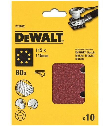 DeWalt Foglio abrasivo grana 80 - 115 x 115 mm - 10 pezzi - DT3022