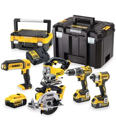 DeWalt - DCK551P3T-QW - Kit de Utensili, trapano a percussione, avvitatore a impulsi, sega circolare, seghetto alternativo, torcia, 3 batterie xr 18V