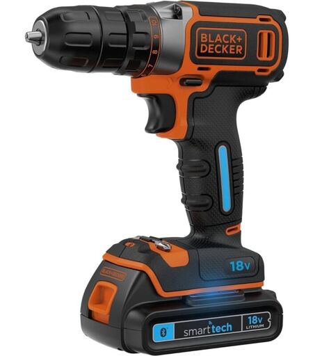 BLACK&DECKER; - TRAPANO A BATTERIA SMARTTECH 18 Volt 1.5 A BDCDC18KST-QW Tecnologia smart tech: connessione Bluetooth della batteria allo smartphone; batteria dotata di porta USB per diventare caricabatterie per smartphone e tablet Batteria al Litio: più leggera delle batterie tradizionali e a lenta autoscarica Sistema 18V Litio: se già disponi di un prodotto dotato della batteria 18V al Litio (BL1518 - BL2018 - BL4018), la potrai impiegare per tutti gli altri prodotti della famiglia 18V BLACK+DECKER Max capacità di foratura: 10mm acciaio, 25mm legno ...