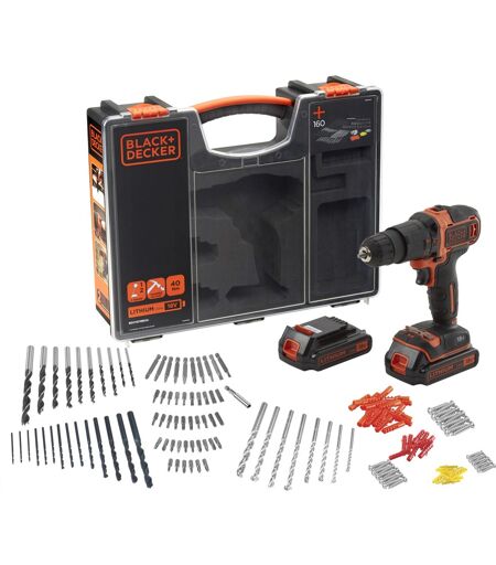Black+decker Trapano avvitatore a percussione 160 accessori 18V 1,5 Ah