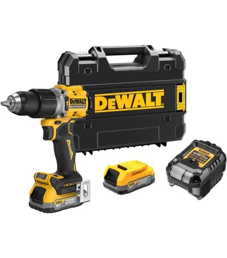DeWalt Trapano a percussione a batteria DCD805E2T 18V con 2 batterie Powerstack da 1,7, caricabatterie, t-stak