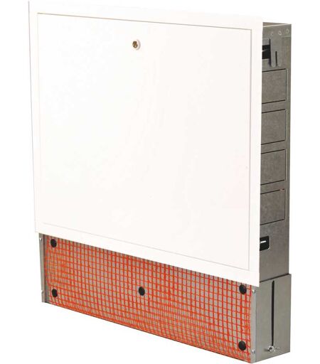 Cassetta Sottointonaco Utilizzata Per Alloggiare Il Collettore E Adatta Per L'installazione A Parete. Sportello Con Serratura Chiavistello Girevole. Massetto Deflettore Amovibile, Dotata Di Due Guide Di Montaggio Per Ricevere Il Collettore Di Riscaldamento. ...