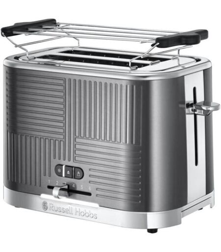 Russell Hobbs Tostapane 25250-56 Grille-Pain Geo Steel, 4 Funzioni, Temperatura Regolabile, Riscalda Pasticceria, Pinza