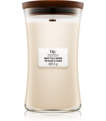 Woodwick White Tea & Jasmine candela profumata con stoppino in legno 609.5 g