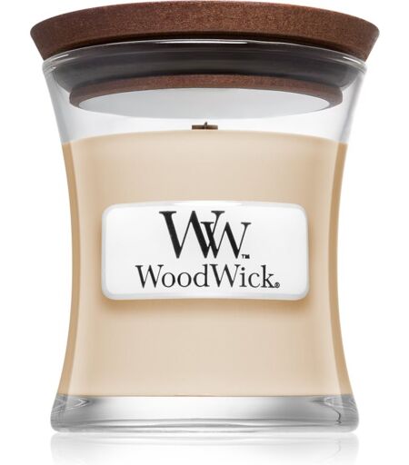 Woodwick Vanilla Bean candela profumata con stoppino in legno 85 g