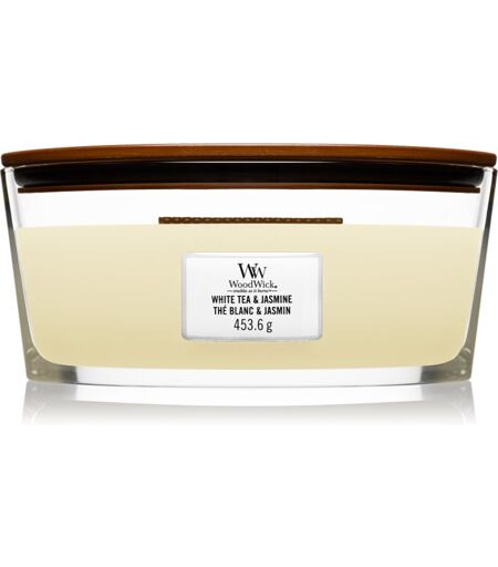 Woodwick White Tea & Jasmine candela profumata con stoppino in legno (hearthwick) 453.6 g