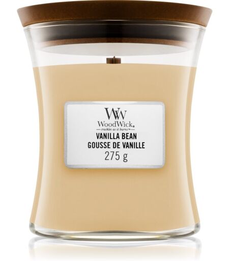 Woodwick Vanilla Bean candela profumata con stoppino in legno 275 g